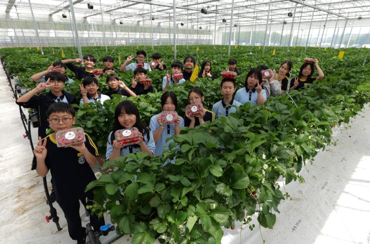 • - 진잠중 학생 정밀농업 체험·딸기 수확 통해 에세이 제작 참여 -